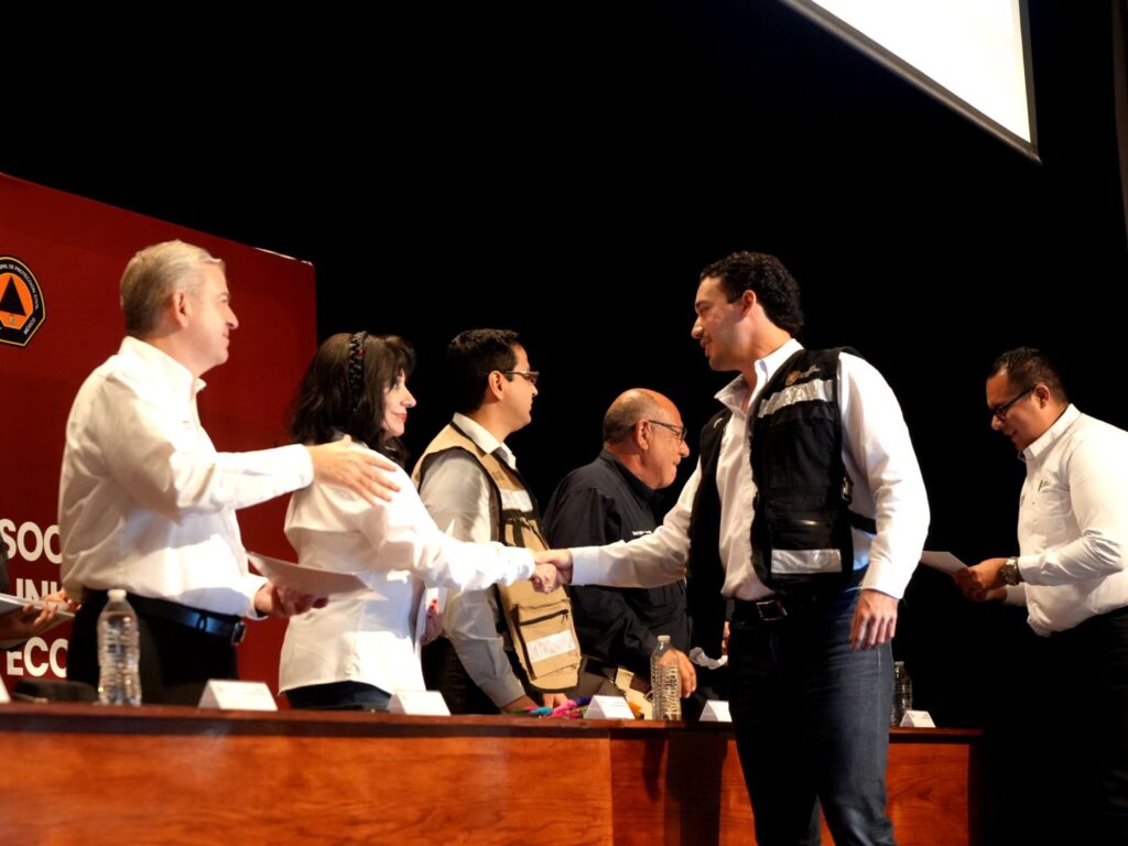 En el marco de la conmemoración de los 40 años del terremoto de 1985 en la Ciudad de México, 79 personas de la Sindicatura Municipal y de las Comisarías Sociales Honorarias recibieron sus constancias de capacitación en Protección Civil, durante un acto realizado en el Teatro “Antonio Salvador Caldera Adame” de la Casa de la Cultura.
