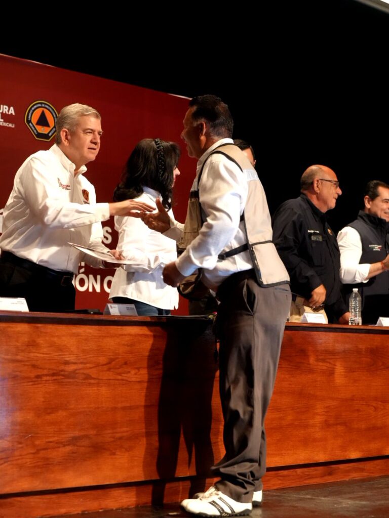El evento fue encabezado por la Alcaldesa de Mexicali, Norma Alicia Bustamante, el Síndico Procurador, Lic. José Óscar Vega Marín, y el Director de la Unidad Municipal de Protección Civil, Capitán René Salvador Rosado, quienes destacaron la importancia de preparar a la comunidad para actuar de manera organizada y solidaria ante cualquier siniestro.